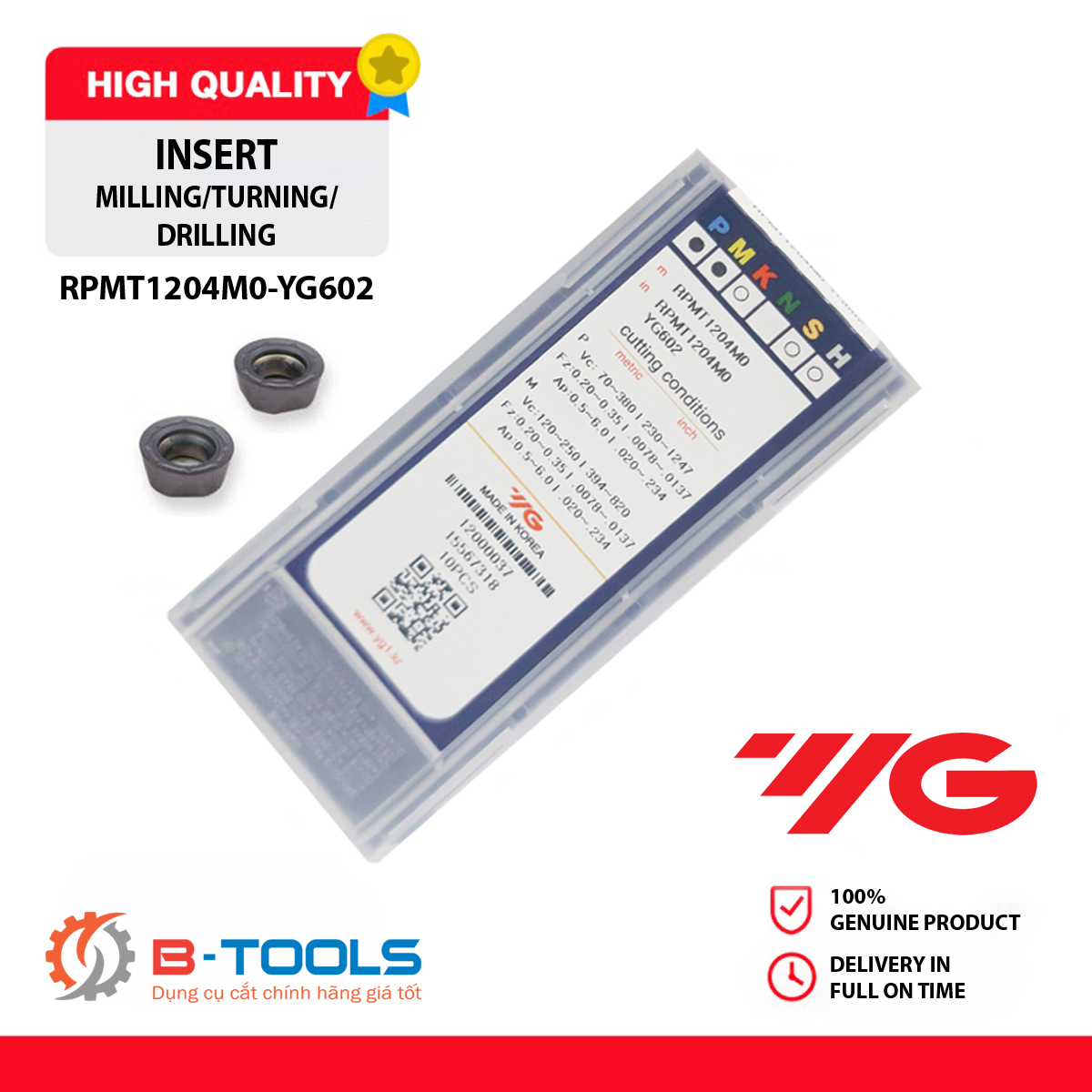 Chíp dao phay hợp kim RPMT Series – YG602 chất lượng cao của YG-1 Hàn Quốc